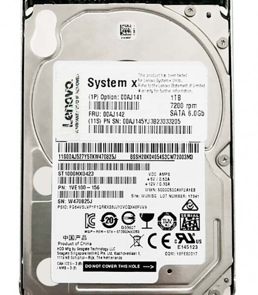 Жесткий диск Lenovo 00AJ141 for x3550/x3650 servers 1TB SATA 7200 rpm 6Gbps HotPlug 2.5 Hard Drive(00A