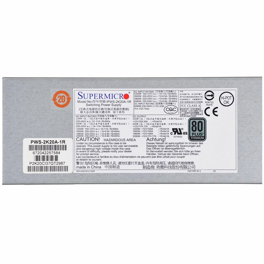 Блок питания Supermicro 1U 2200W Redundant Titanium 76(W) X 40(H) X 336(L) mm PWS-2K20A-1R