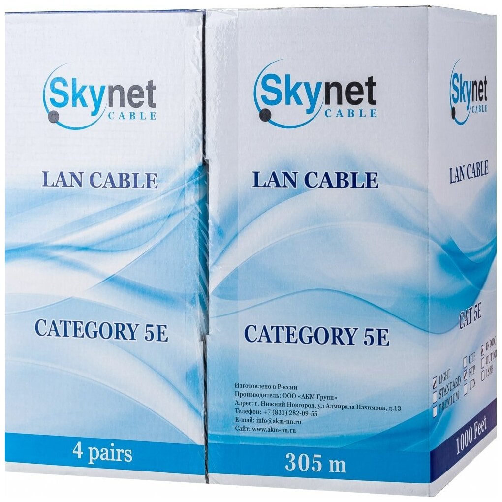 | Прочие особенности и свойства | Витая пара SkyNet CSL-FTP-4-CU – отличный выбор для использования внутри помещений. Модель соответствует категории 5e, и предназначена для передачи данных со скоростью до 1 Гбит/с. Преимуществом кабеля является наличие экрана из фольги, эффективно противодействующего воздействию электромагнитных и иных помех., Кабель SkyNet CSL-FTP-4-CU поставляется в бухте, длина которой составляет 305 м. Серый цвет изоляции кабеля хорошо подходит к интерьеру большинства офисных и жилых помещений. Кабель упакован в компактную картонную коробку, на которой размещена наклейка с информацией о кратких технических характеристиках изделия. |