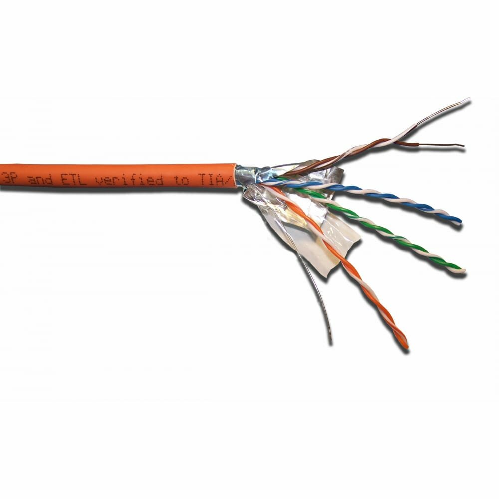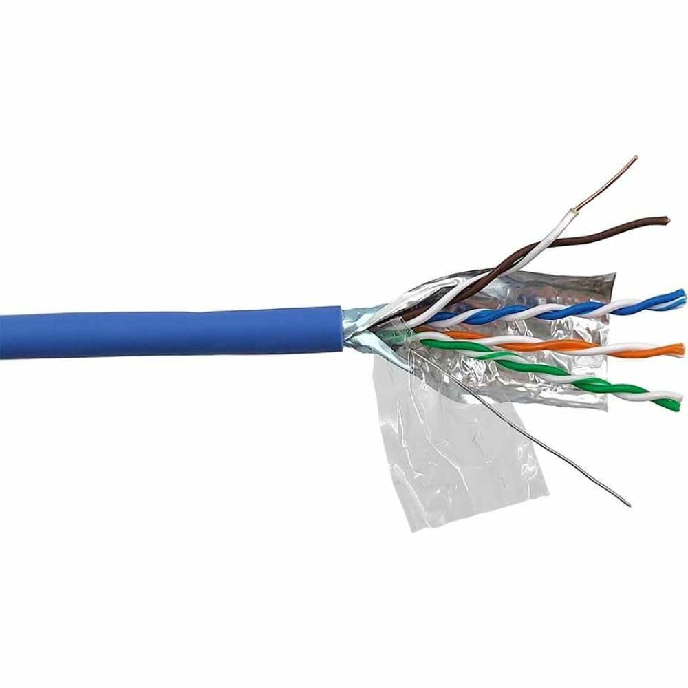 Кабель витая пара фирмы Lanmaster состоит из 4-х пар одножильных медных проводников. Каждый проводник заключен в изоляцию HDPE. Два проводника, скрученных со специально подобранным шагом, составляют одну витую пару. 4 витых пары обернуты полиэтиленовой пленкой и вместе с медным одножильным заземляющим проводником заключены в общий экран из фольги и оболочку из LSZH. Высокопроизводительный экранированный кабель для передачи цифровой и аналоговой информации на частотах до 200 МГц. Цветовая кодировка: пара 1 «голубой/бело-голубой»; пара 2 «оранжевый/бело-оранжевый»; пара 3 «зеленый/бело-зеленый»; пара 4 «коричневый/бело-коричневый».