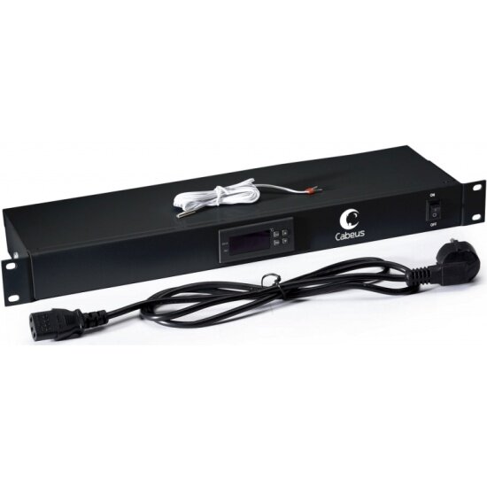 Контрольная панель климат контроля предназначена для мониторинга температуры внутри телекоммуникационного шкафа с возможностью подключения двух вентиляторных устройств. Устанавливается на направляющие телекоммуникационного шкафа размерностью 19”. Для подключения вентиляторных устройств используются две розетки IEC 320 C13.