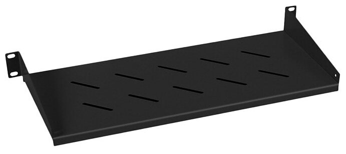 Консольная полка 1U переднего крепления на направляющие шкафов и стоек 19”. Предназначена для размещения малогабаритного оборудования, не имеющего стандартного 19” крепления. Полка имеет перфорацию, позволяющую охлаждать технологическое оборудование. Максимально разрешенная нагрузка -15 кг.