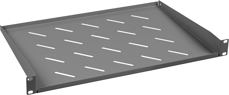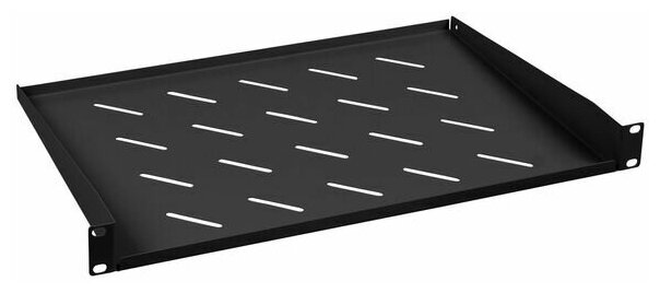 Консольная полка 1U переднего крепления на направляющие шкафов и стоек 19”. Предназначена для размещения малогабаритного оборудования, не имеющего стандартного 19” крепления. Полка имеет перфорацию, позволяющую охлаждать технологическое оборудование. Максимально разрешенная нагрузка -15 кг.