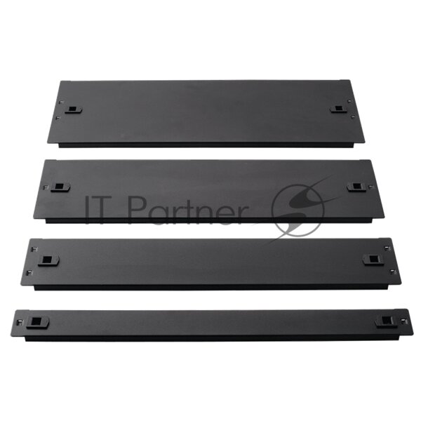 Панель для установки на монтажные профили шкафа с целью закрытия неиспользуемого пространства, блокировки воздушных потоков и повышения эффективности охлаждения оборудования в шкафу. Панель фиксируется на профилях с помощью пластиковых защелок и не требует использования дополнительного крепежа.