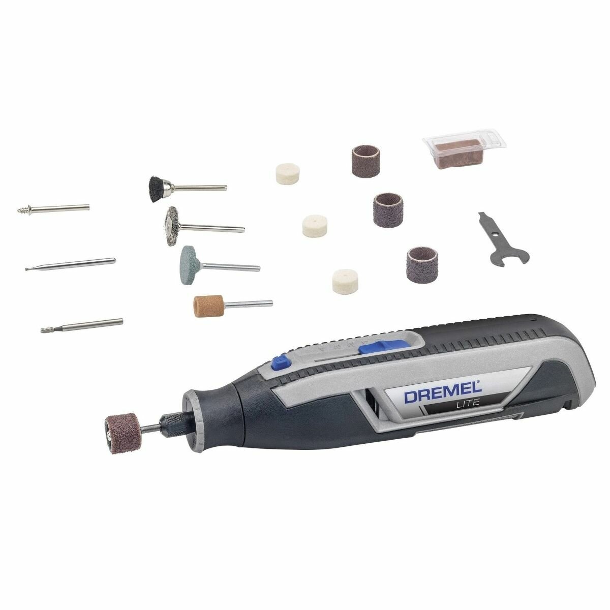 Универсальность этого набора позволяет шлифовать, шкурить, затачивать, резать, гравировать, чистить и полировать, меняя одни лишь насадки. Занимайтесь любыми мелкими работами домашнего мастера или творческими проектами. 15 прилагаемых насадок дают возможность обрабатывать разнообразные материалы несколькими разными способами. Вы можете использовать беспроводной инструмент Dremel Lite с зарядкой от USB в любое время и в любом месте, в помещении и на улице. Будет ли это ваш первый многофункциональный инструмент Dremel или дополнение к коллекции Dremel, можете не сомневаться – этот набор позволит завершить любую начатую работу.