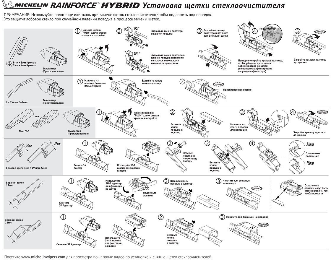 Гибридная щётка стеклоочистителя MICHELIN оснащена уникальными адаптерами EZLOK, которые помогают сделать установку быстрой и удобной. Эргономичная форма обеспечивает плотное прилегание к стеклу, а ультрасовременный дизайн гарантирует превосходный контакт с ним.