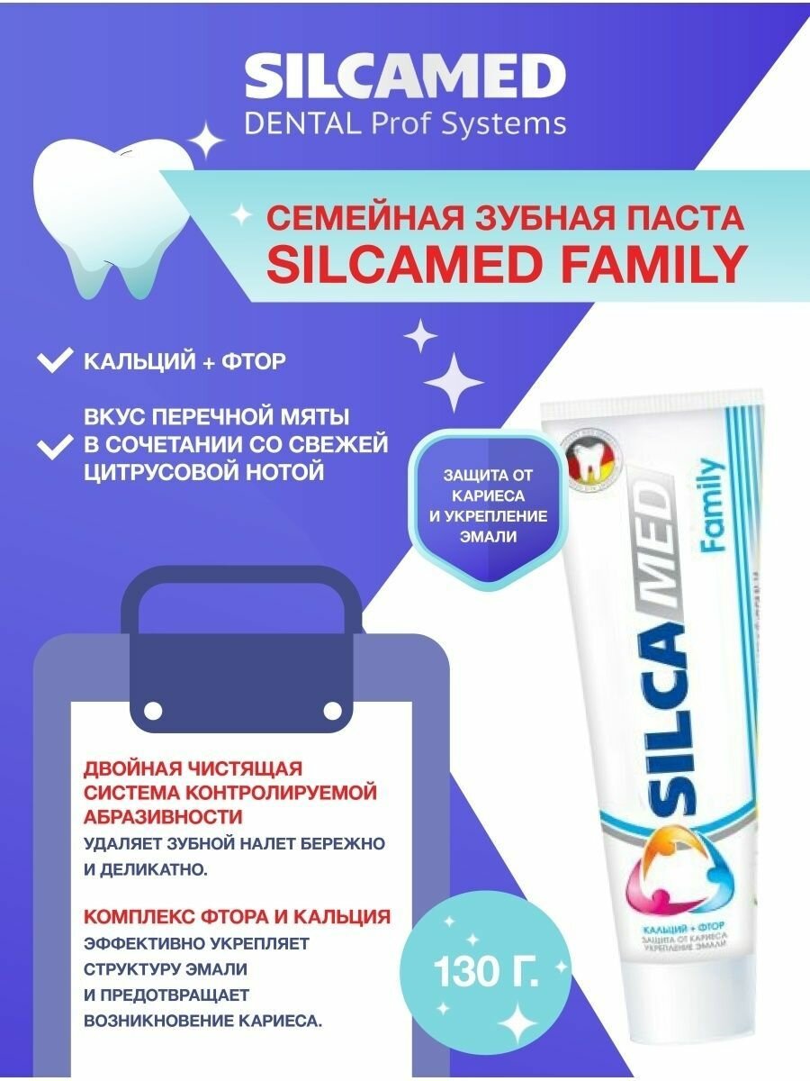 | Состав набора | Зубная паста SILCAMED Family |