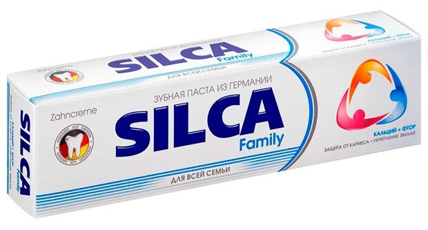 Паста обеспечивает не только ежедневный бережный уход за зубами, надежную профилактику кариеса, но и защиту от воспалительных заболеваний десен и слизистой благодаря наличию в составе аллантоина, который в недорогих пастах обычно не используется. Silca Family содержит оптимальное содержание кальция и монофторфосфата натрия, удачную комбинацию абразивных веществ. Эта семейная паста поистине незаменима для людей с ограниченными средствами.