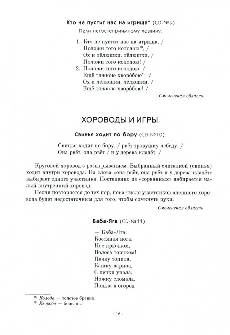 Песенные образцы даны в аудиозаписи современных детских этнографических коллективов (компакт-диск), и предполагают исключительно устный способ их освоения, без посредства нотной графики.