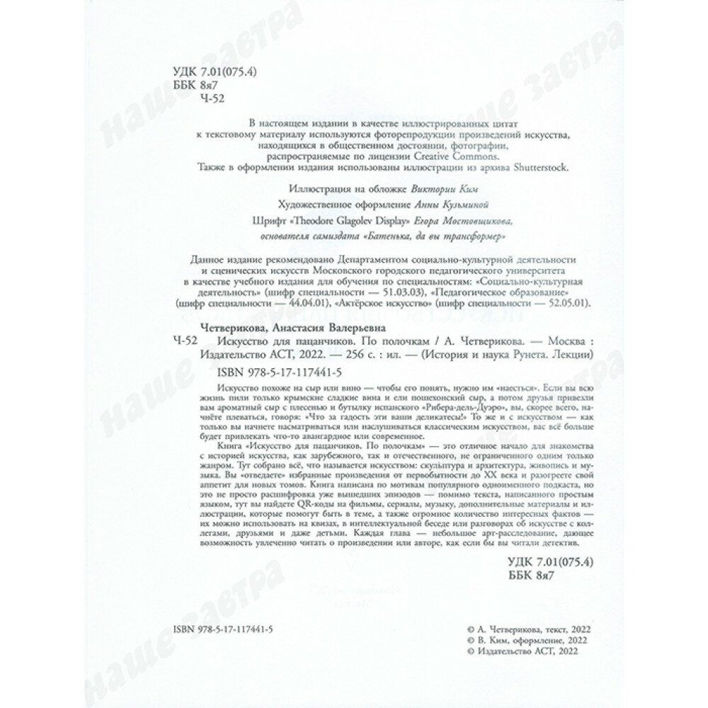 В книге есть QR-коды со ссылками на дополнительную, более подробную информацию и интересные детали, что увеличивает информационную базу книги в несколько раз).Очень рекомендую подкаст и книгу Насти, в том числе (а может быть особенно) для того , чтобы заинтересовать искусством детей. -