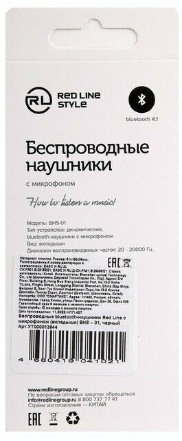 - Гарнитура Red Line BHS 01 беспроводная bluetooth вкладыши чёрная