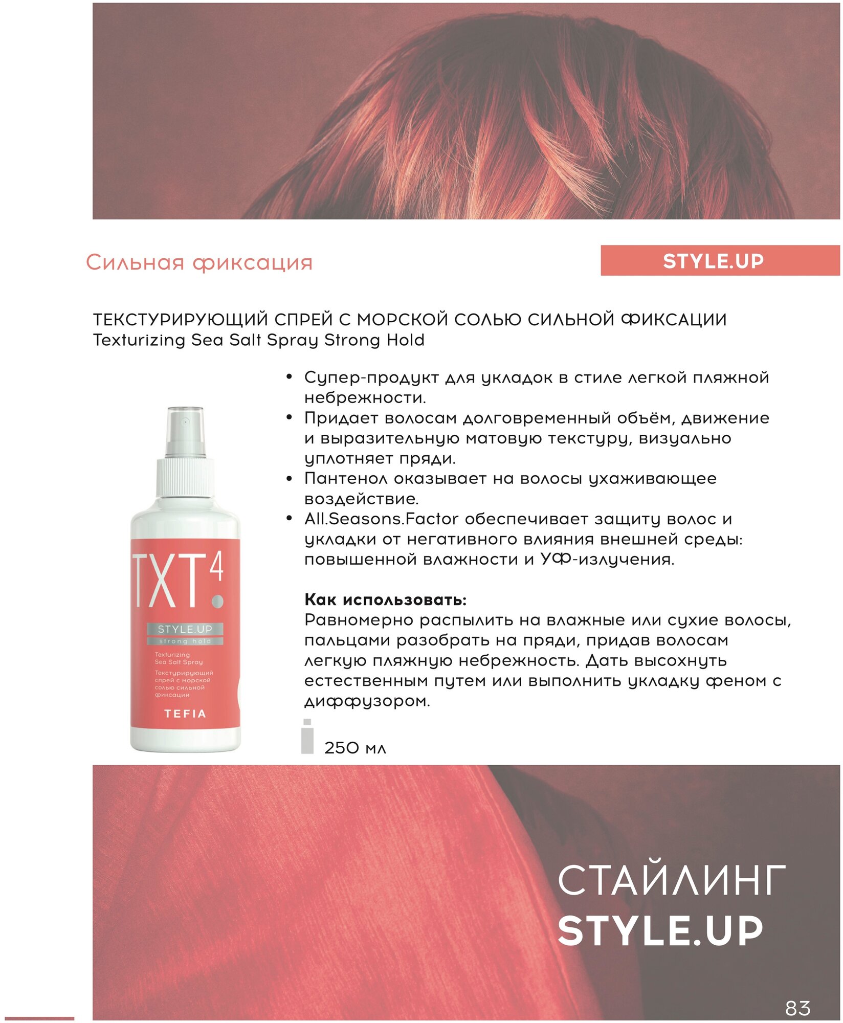 Текстурирующий спрей с морской солью сильной фиксации: супер-продукт для укладок в стиле легкой пляжной небрежности, пантенол оказывает на волосы ухаживающее воздействие. All.Seasons.Factor обеспечивает защиту волос и укладки от негативного влияния внешней среды: повышенной влажности и УФ-излучения
