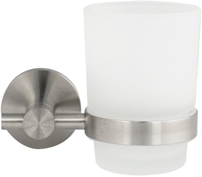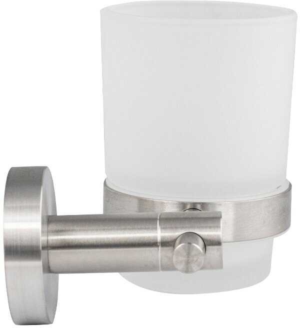 Стакан стеклянный с креплением к стене, правильной формы на основании. Изделие выполнено из матового стекла и металла с матовым покрытием Изготовлен из прочной нержавеющей стали марки SUS 304 с матовым покрытием, которое придает безупречный стильный вид и долговечность. Идеально подойдет не только для ванной, но и для кухни. Изделие крепится к стене с помощью дюбелей и саморезов (входят в комплект). Габаритные размеры: высота стакана 95 мм, диаметр 65 мм, ширина 115 мм, основание 50 мм. Вес - 0,500 кг.