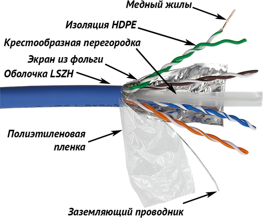 Патч-корды соответствуют кат.6а и отвечают стандартам ISO/IEC 11801. Материал оболочки и заливной части патч-корда — малодымящий, не выделяющий галогенов ПВХ — LSZH (Low Smoke Zero Halogen). Для обеспечения прочного соединения экранированной вилки RJ-45 и кабеля место соединения заливается пластмассой, такое соединение называется «заливным» или molded.Для защиты язычка разъема RJ-45 от повреждений и обламывания в конструкции заливной части предусмотрены специальные боковые ребра. Особенностью данного решения является то, что оно не препятствует нажатию на язычок разъема.Диаметр проводника 26 AWG