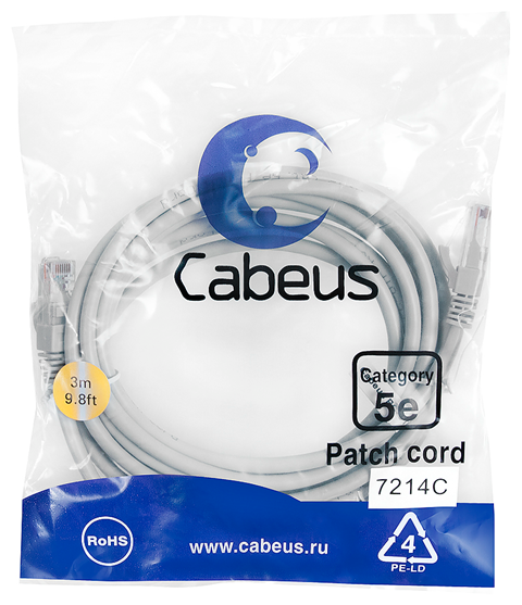Кабель патч-корд UTP 5e кат. 3м. Cabeus PC-UTP-RJ45-Cat.5e-3m