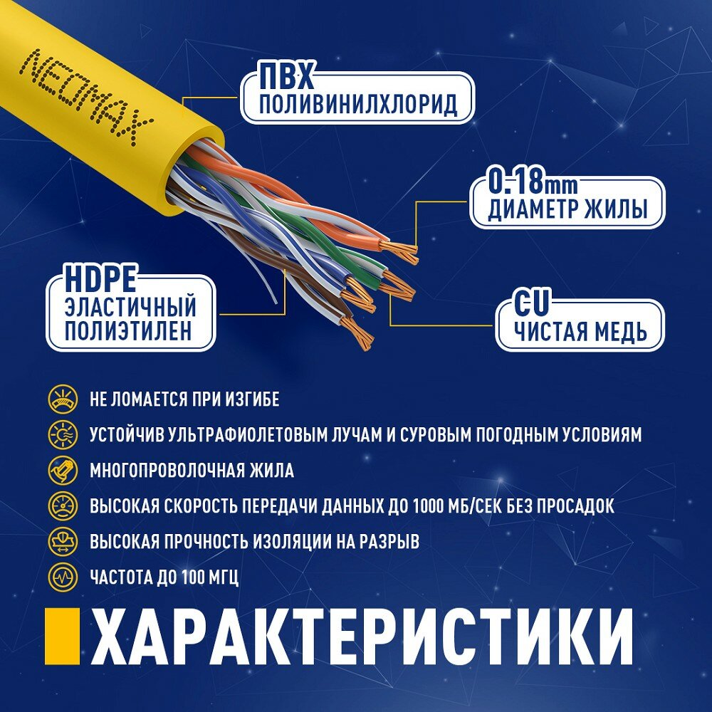 Кабель патч-корд UTP 5e кат. 3м. Neomax 13001-030Y