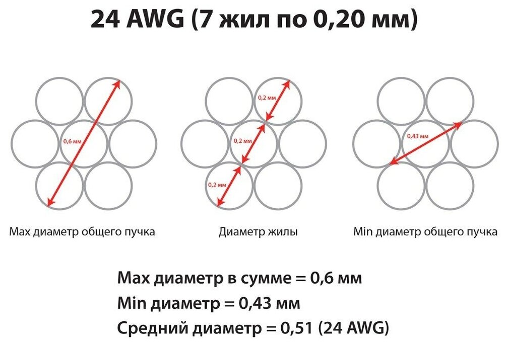 | Диаметр проводника | 24 AWG |
