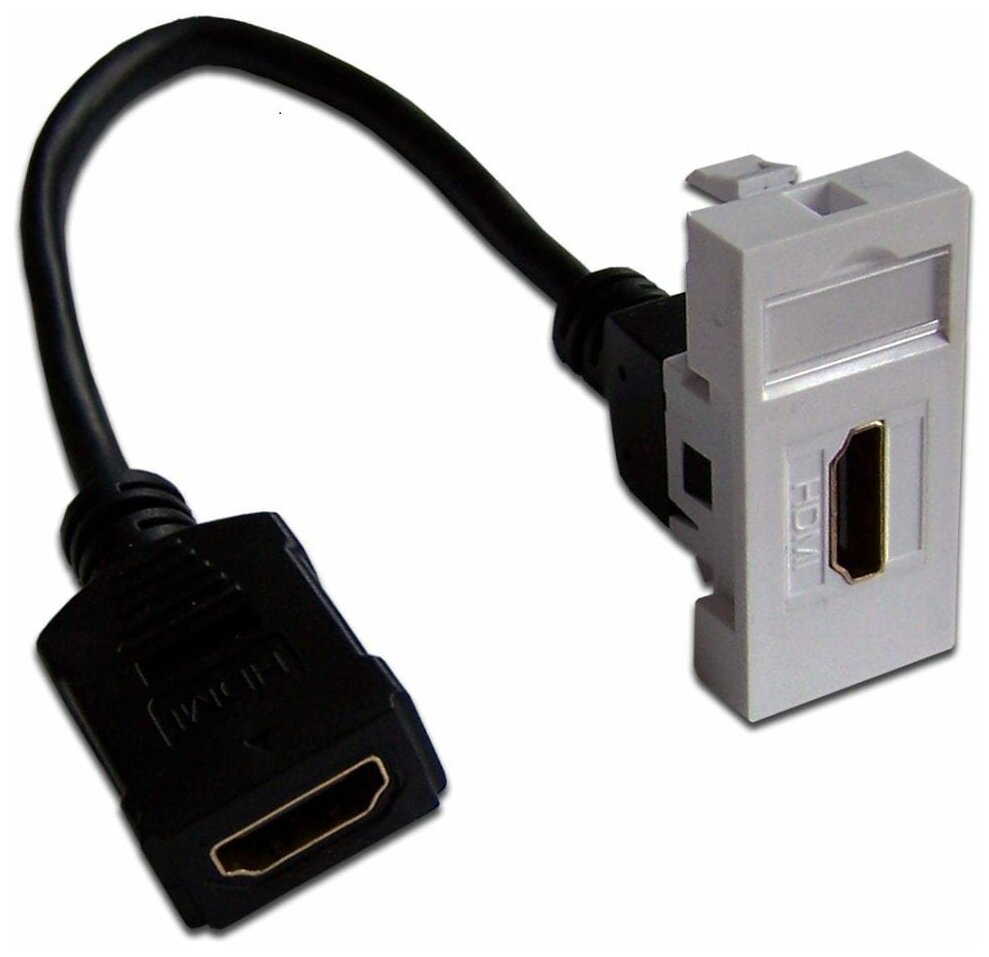 Вставка предназначена для установки в розетку французского стандарта Mosaic. Комплектуется HDMI-разъемом типа A с удлинительным кабелем, обеспечивающим удобное подключение HDMI-кабелей, подходящих с внутренней стороны розетки.