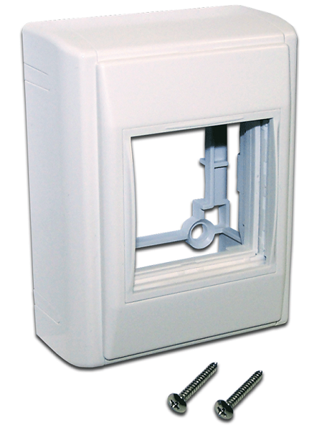 | Назначение | Настенная коробка предназначена для организации телекоммуникационных розеток, а также установки силовых электрических розеток, или любых других механизмов произведенных под французский стандарт Mosaic 45x45 |
