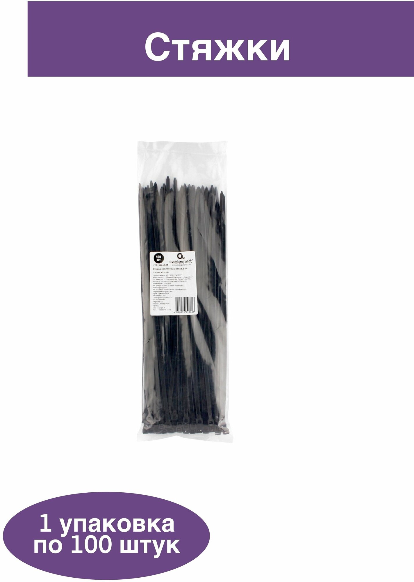 При производстве используется только высококачественное сырье и специальные добавки, которые позволяют выдерживать более высокие нагрузки на разрыв, устойчивость к УФ-излучению за счет УФ-стабилизаторов по международному стандарту ASTM D6779. - Для крепежа и соединения в жгут кабелей и проводов - Цвет: черный (устойчивый к уф-излучению) - Материал: нейлон 6,6, самозатухающий, без галогенов - Температура эксплуатации: от -40 °С до +85 °С - Температура монтажа: от 0 °С до +60 °С - Замковый механизм одностороннего хода, неразъемный - Средняя нагрузка раскрытия, кг: 22 - Макс. диаметр обхвата, мм: 80Стяжки Cablexpert пластиковые чёрные 300 мм х 4.8 мм (100 шт.) представляют собой надежное и качественное решение для крепежа и соединения в жгут кабелей и проводов. Изготовленные из нейлона 6,6, эти стяжки обладают самозатухающими свойствами и не содержат галогенов, что делает их безопасными для использования в различных условиях.Благодаря использованию высококачественного сырья и специальных добавок, стяжки Cablexpert обладают повышенной устойчивостью к УФ-излучению и способны выдерживать более высокие нагрузки на разрыв.Стяжки имеют длину ленты 300 мм и толщину 4.8 мм, что позволяет использовать их для обхвата кабелей и проводов диаметром до 80 мм.В упаковке содержится 100 штук стяжек, что обеспечивает достаточное количество материала для выполнения различных задач.Стяжки Cablexpert пластиковые чёрные 300 мм х 4.8 мм (100 шт.) – это надежный и качественный продукт, который станет незаменимым помощником при выполнении различных работ, связанных с креплением и соединением кабелей и проводов.