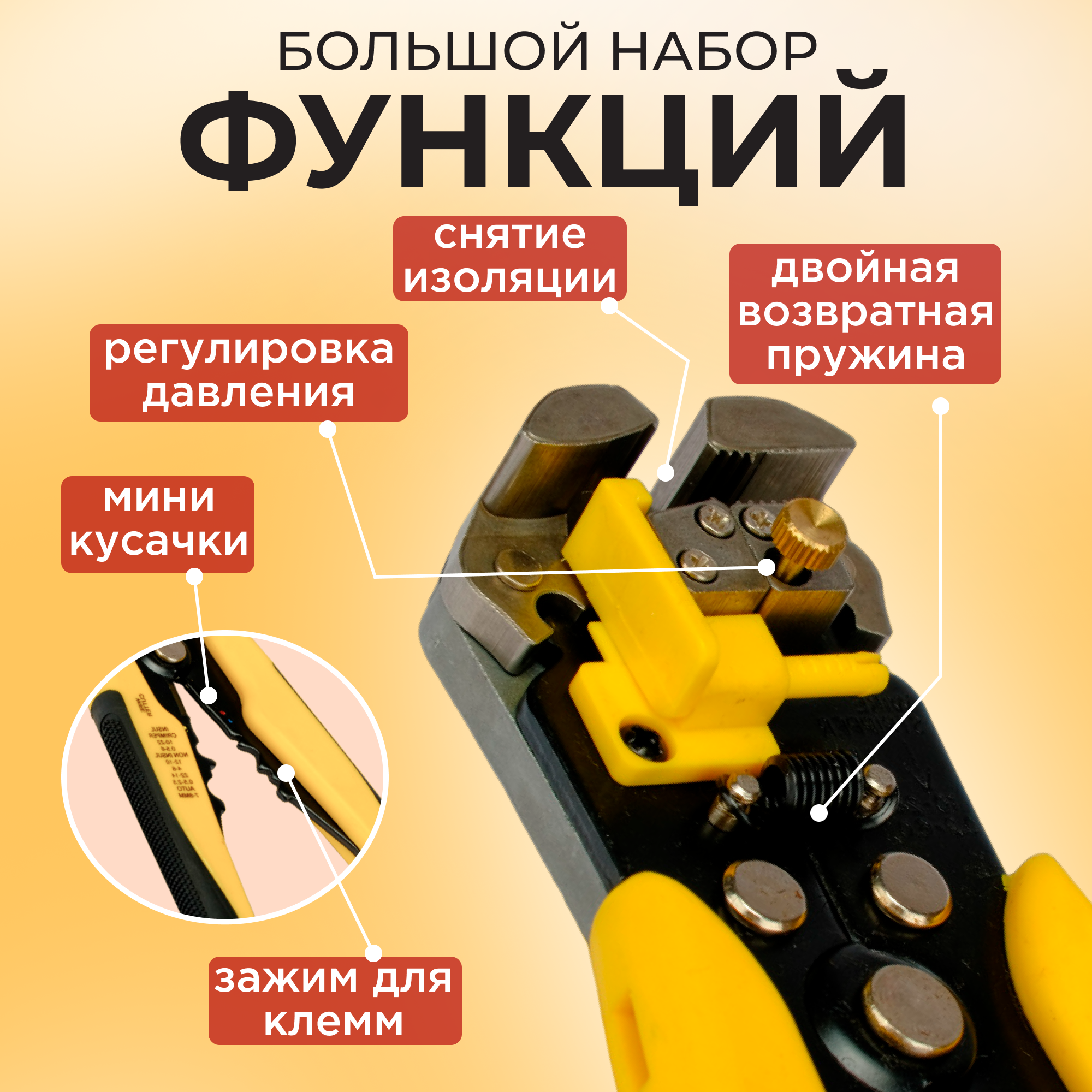 - Диапазон проводов для зачистки: AWG24 - AWG10 (0.2- 6 мм²)