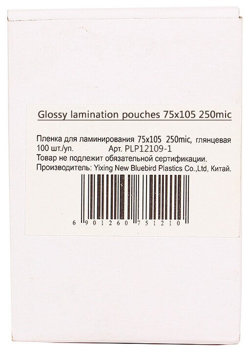 | Толщина плёнки | 250 мкм |
