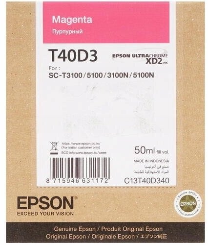 | Модель | T40D3 Magenta 50 мл (C13T40D340) |