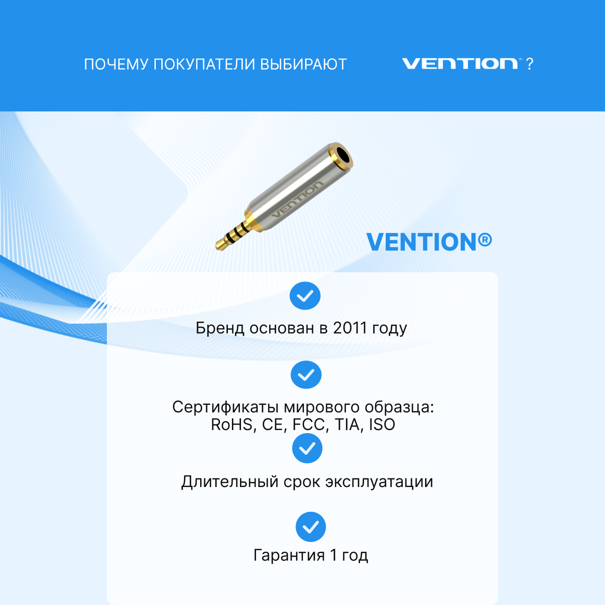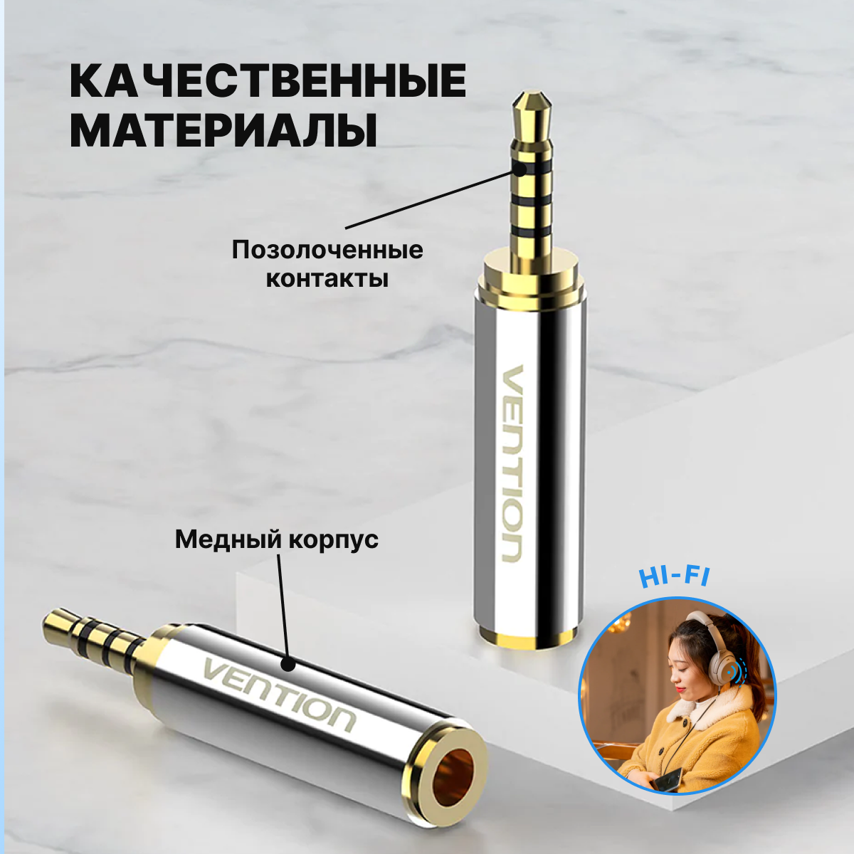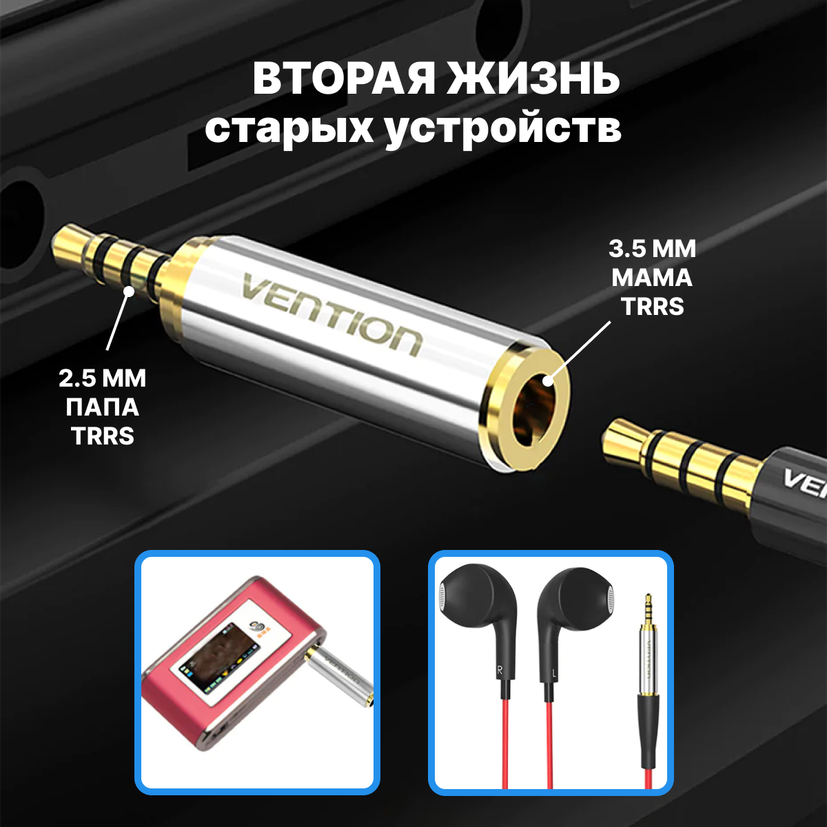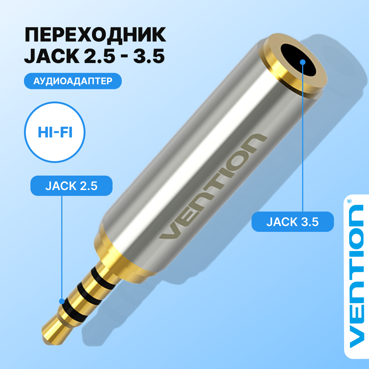 Vention 3.5 Jack F - 2.5mm Jack M - это переходник предназначен для передачи аналоговых стереозвуковых сигналов, из одного разъема в другой - между аудио, звукозаписывающими, студийными устройствами, или их компонентами.
