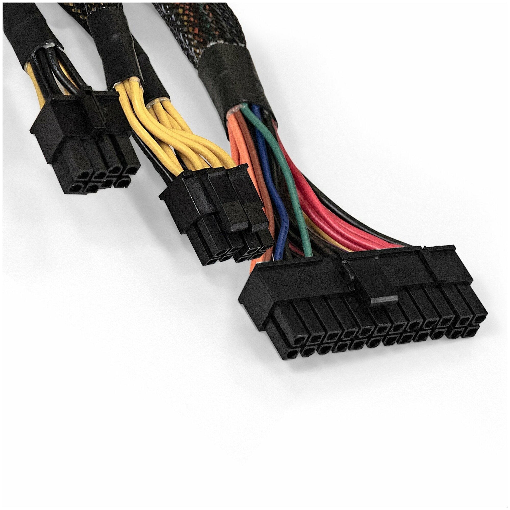 | Максимальная нагрузка (сила тока по линиям) | Ток по линии +3.3 В 21 A, Ток по линии +5 В 18 A, Ток по линии +12 В 1 40 A, Ток по линии +12 В 2 40 A, Ток по линии -12 В 0.3 A, Ток по линии +5 В Standby 3 A |