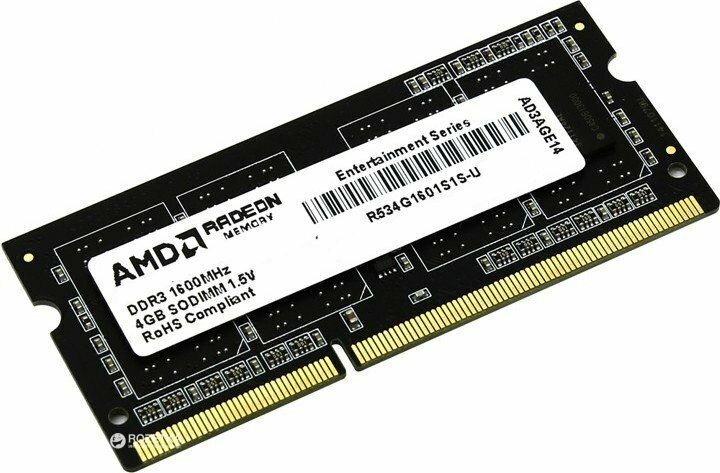 Модуль памяти SODIMM DDR3 4GB AMD 1600MHz PC3-12800 CL11 1.5V Non-ECC Retail R534G1601S1S-U