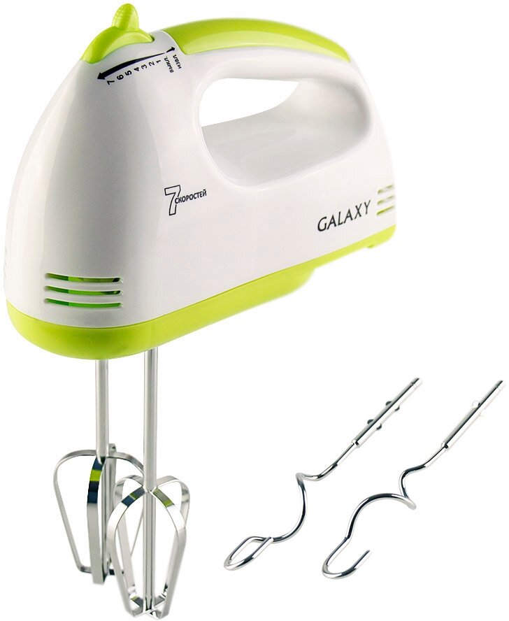 Миксер ручной Galaxy гл2206 белый/зеленый, мощность 200Вт, скоростей работы: 7