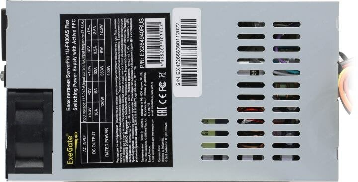 Блок питания Exegate EX264940RUS 400W APFC унив. для Flex1U 24pin 4pin3xSATA 2xIDE ServerPRO-1U-F400AS
