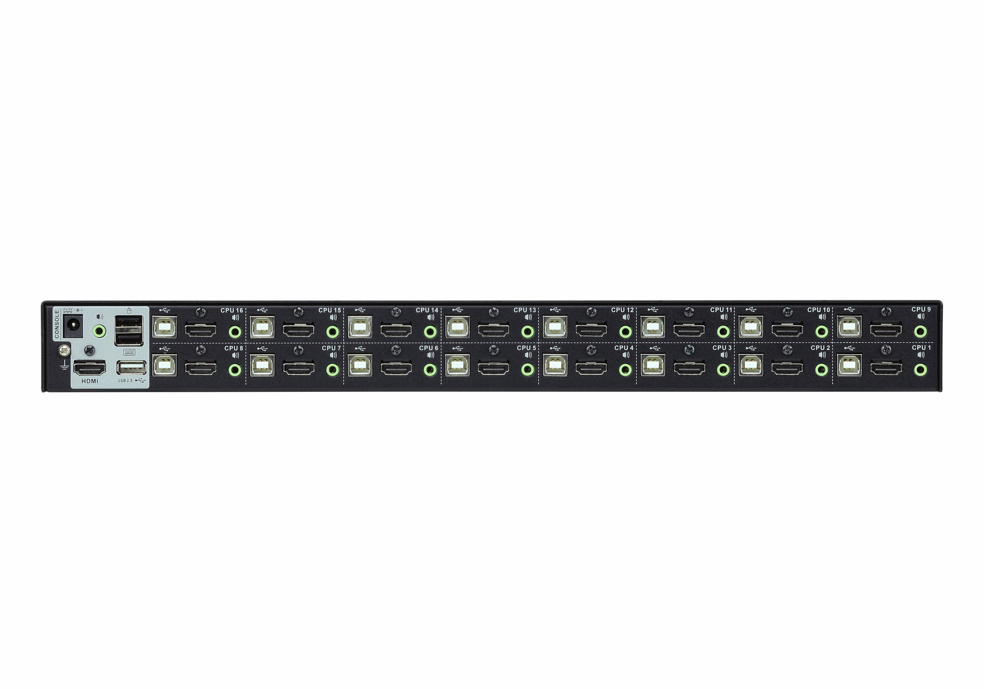 | Дополнительно | Порты консоли:гнездо USB тип А (черного цвета) - 2 шт.;гнездо HDMI - 1 шт.; миниатюрное гнездо стерео - 2 шт.,KVM порты:гнездо USB тип В (белого цвета) - 16 шт.; гнездо HDMI (белого цвета) - 16 шт.; миниатюрное гнездо стерео (зеленого цвета) - 16 шт.,Обновление микропрограммы |