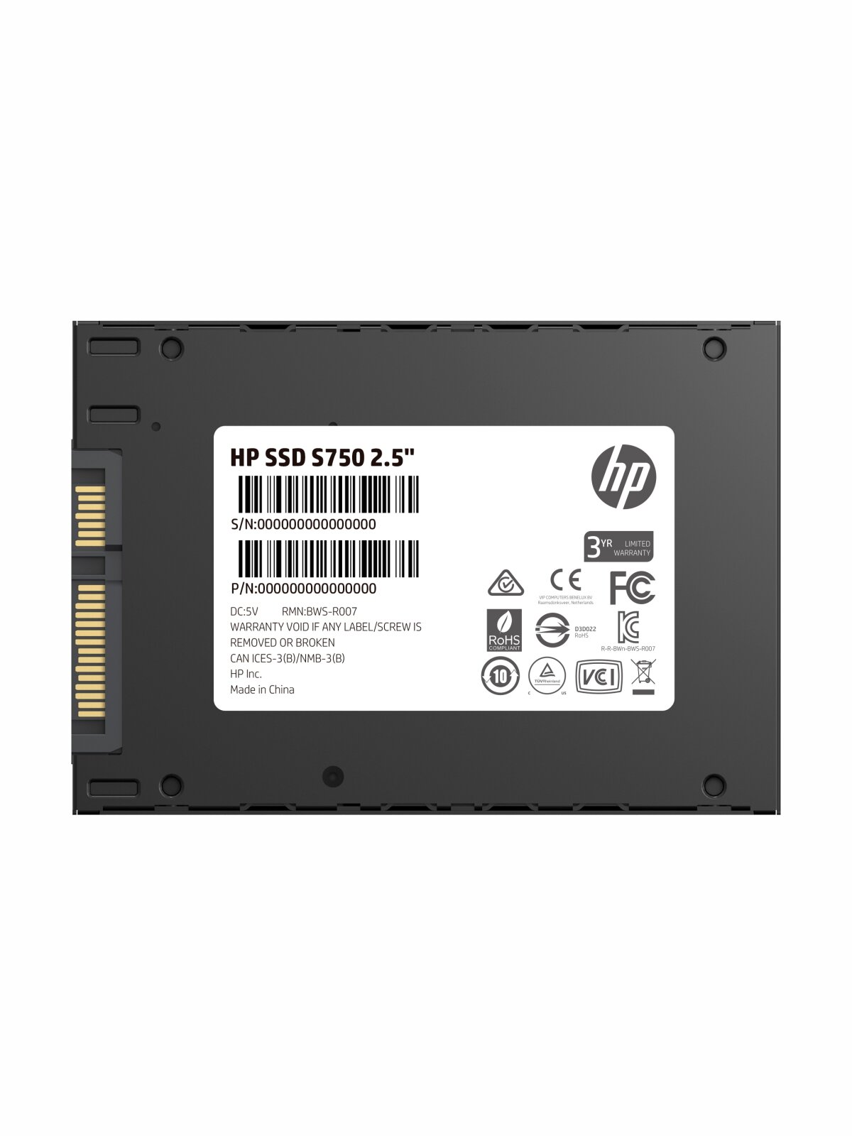 Накопитель SSD 2.5'' HP S750 512GB SATA 6Gb/s 3D NAND TLC 560/520MB/s IOPS 90K/89K 7mm 16L53AA