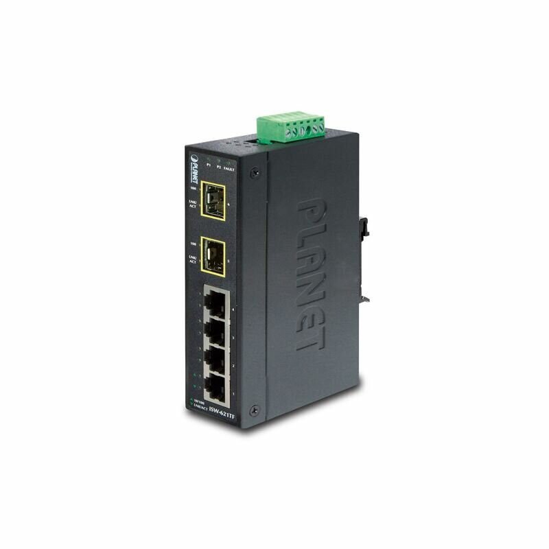 PLANET это промышленный коммутатор Ethernet, который может работать в широком диапазоне температур от -40 до 75 градусов C и оснащен двумя слотами 100Base-FX SFP. При поддержке двух портов mini-GBIC 100Base-FX SFP (Small-Form Factor Pluggable) развернутое расстояние может быть увеличено с 2 километров (по многомодовому волокну) до более чем 60 километров (по одномодовому волокну) соответственно. Другими словами, обеспечивает большую гибкость для транспортировки, производства, безопасности и наблюдения с увеличением расстояния без каких-либо ограничений и является подходящей моделью как для развертывания сетей на большие расстояния.