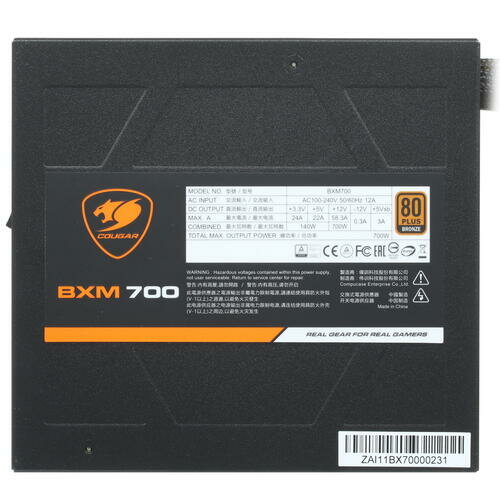 Блок питания ATX Cougar модульный Разъем PCIe-4шт v2.31 700W Active PFC 135mm HDB Fan DC-DC 80 Plus Bronze Retail BXM700
