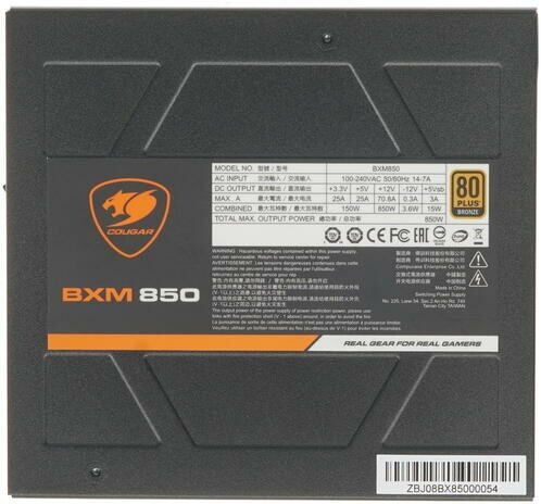 Блок питания ATX Cougar модульный Разъем PCIe-4шт v2.31 850W Active PFC 135mm HDB Fan DC-DC 80 Plus Bronze Retail BXM850