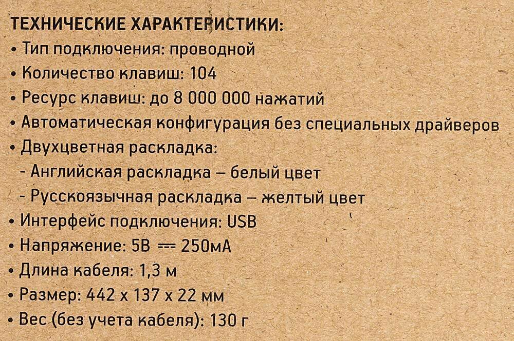 | Габариты клавиатуры | 442.2 x 22 x 137.6 мм |