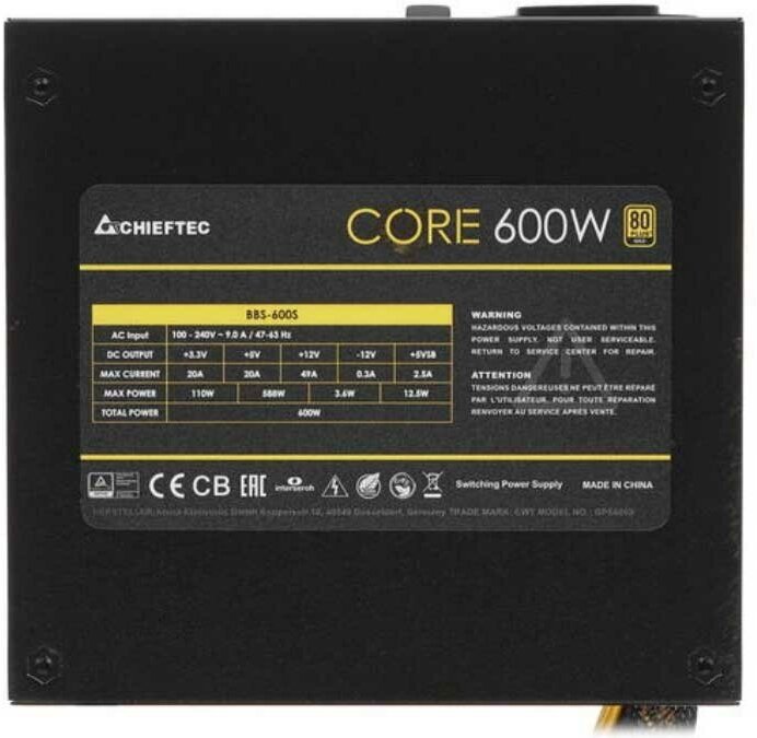 Блок питания ATX Chieftec (600W 80 PLUS GOLD Active PFC 120mm fan) Bulk BBS-600S