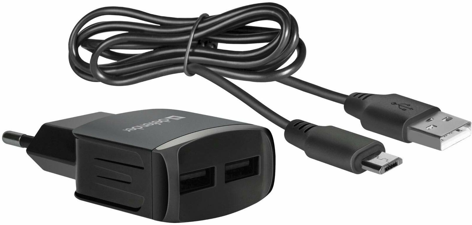Сетевой адаптер Defender 2xUSB,5V/2.1А. Можно заряжать два устройства одновременно. Отлично подходит для путешествий. Подходит для розетки европейского стандарта. Защита от перегрузки и короткого замыкания. Кабель micro-USB в комплекте.