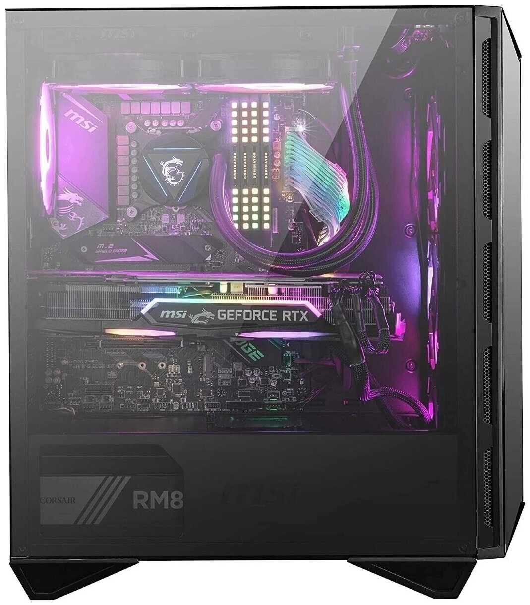 4 предустановленных вентилятора снабжены красочной адресуемой подсветкой, которой можно управлять через приложение MSI Mystic Light.Окошко из закаленного стекла