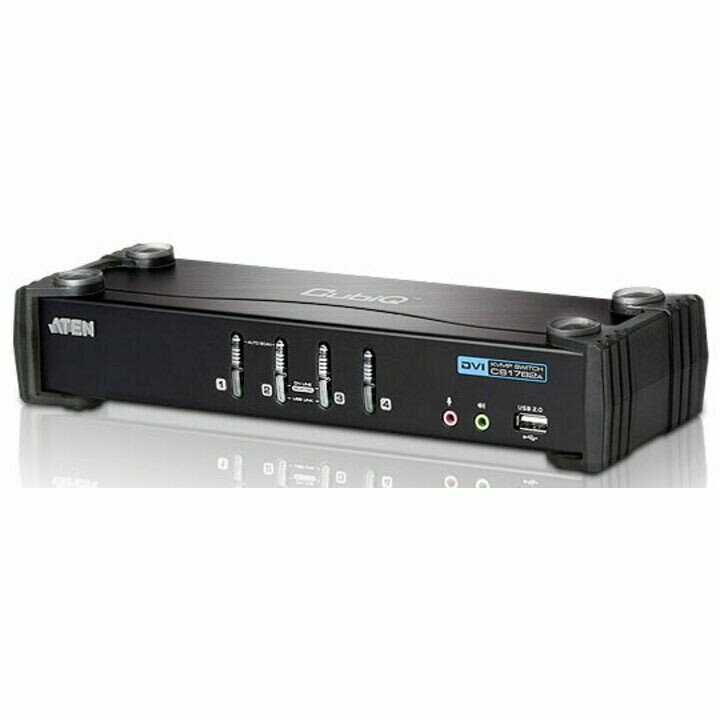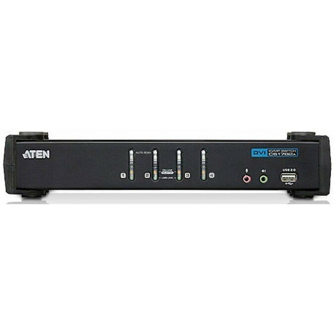 | Дополнительная информация | CS1764A — USB 2.0 DVI KVMP™-переключатель, открывает новые революционные возможности в функционировании KVM-переключателей, комбинируя 4-портовый KVM-переключатель и 2-портовый USB концентратор (хаб) и в то же время, он предоставляет интерфейс для цифрового монитора (Digital Visual Interface, DVI). Как переключатель KVM устройство позволяет пользователям обращаться к четырем компьютерам c одной консоли (клавиатуры USB, мыши USB и монитора), как USB 2.0 концентратор обеспечивает доступ каждого компьютеру к любому периферийному устройству, соединенному к концентратором. |