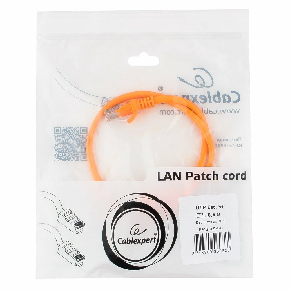 Кабель патч-корд UTP 5e кат. 05м. Cablexpert PP12-0.5M/O