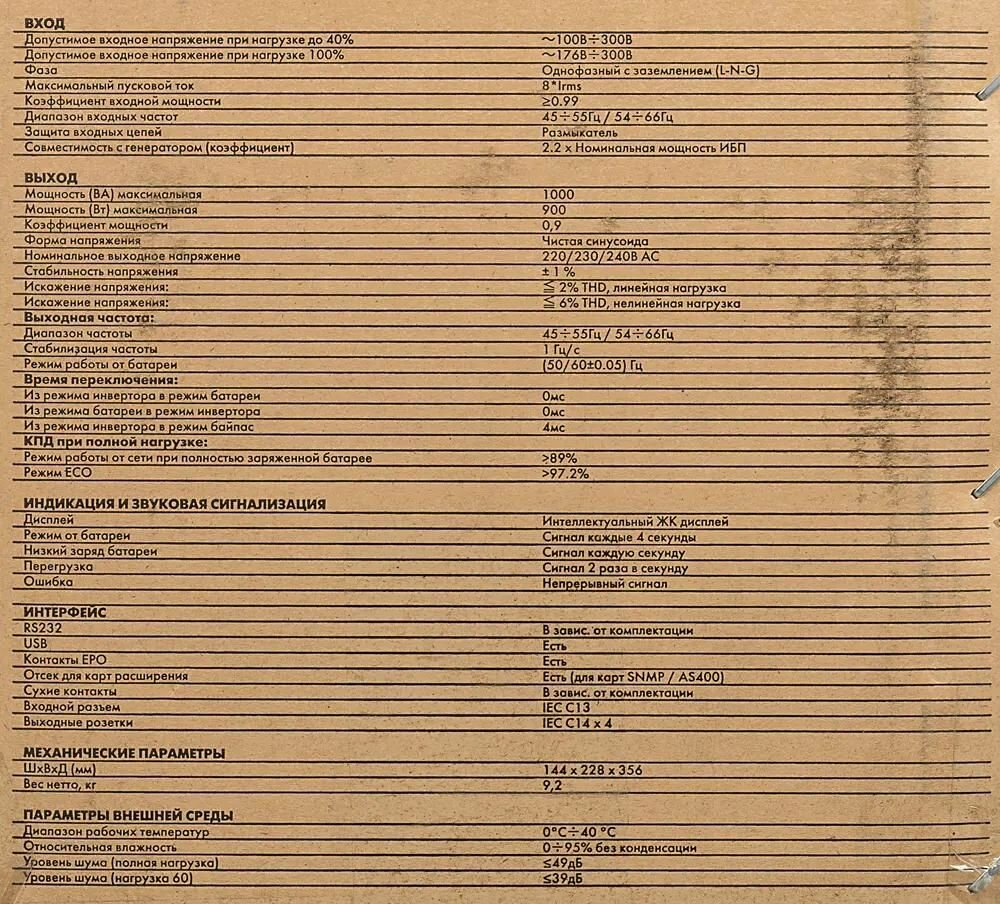 | Полная выходная мощность | 1000 ВА |