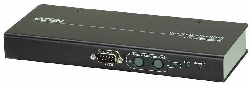 CE750 – USB KVM-удлинитель с индикаторами автоматической компенсации и портом последовательного подключения RS-232, обеспечивающим доступ к компьютерной системе с удаленной USB-консоли (USB-клавиатура, монитор и USB-мышь). По сравнению с предыдущими моделями у CE750 присутствует RS-232 порт как на Локальном, так и на Удаленном устройствах, что позволяет подключать последовательно к Локальному устройству терминалы для расширения конфигурации установки и к Удаленному устройству — такие устройства, как сенсорные экраны и сканеры штрих-кода.
