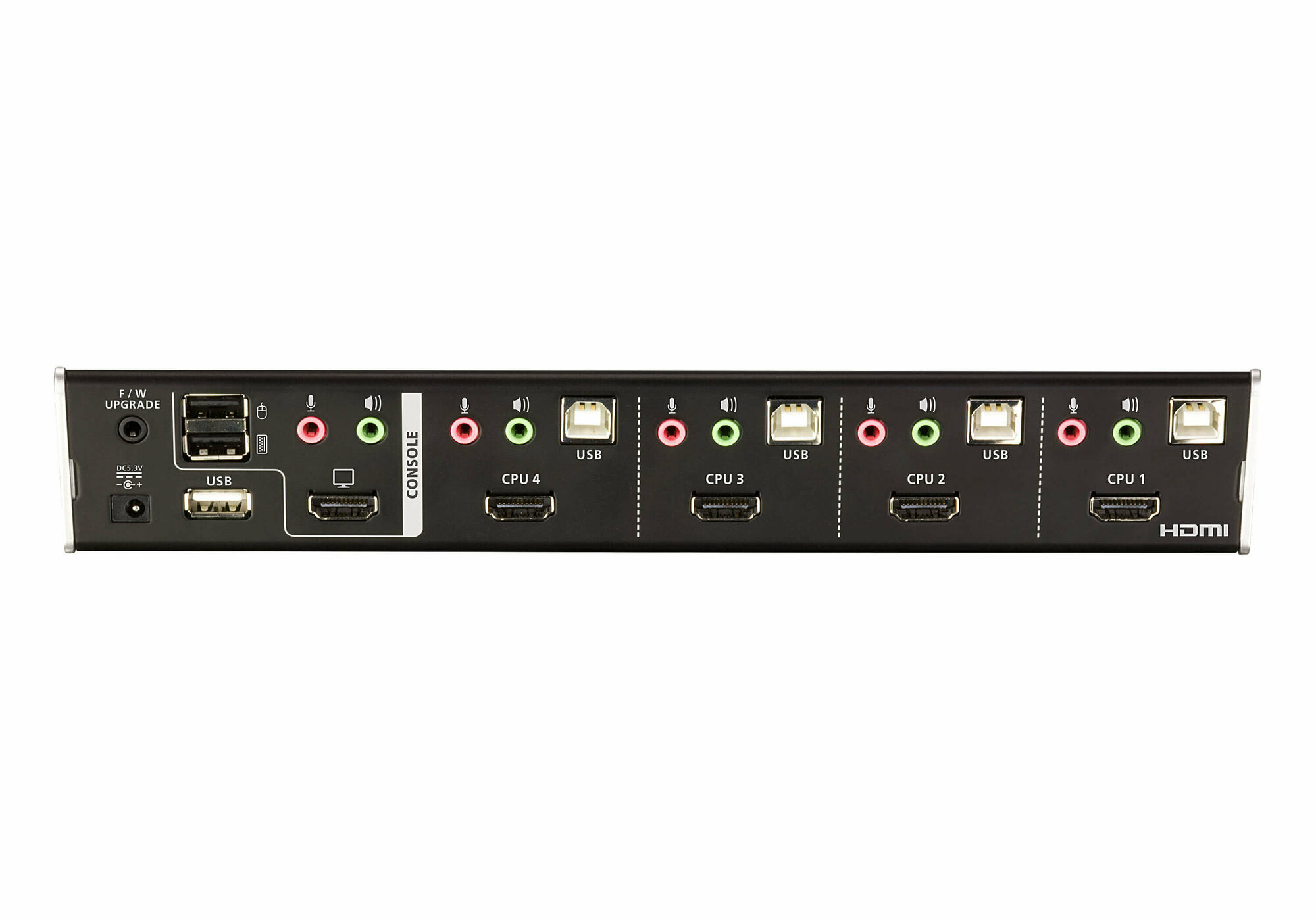 Совмещая в себе 4-портовый переключатель CS1794 обеспечивает быстрое переключение сигнала HDMI между 4 ПК или другими устройствами с поддержкой HDMI. KVM переключатель оснащен 2-портовым USB 2.0-концентратором, который позволяет использовать периферийные устройства USB с любого из подключенных компьютеров.