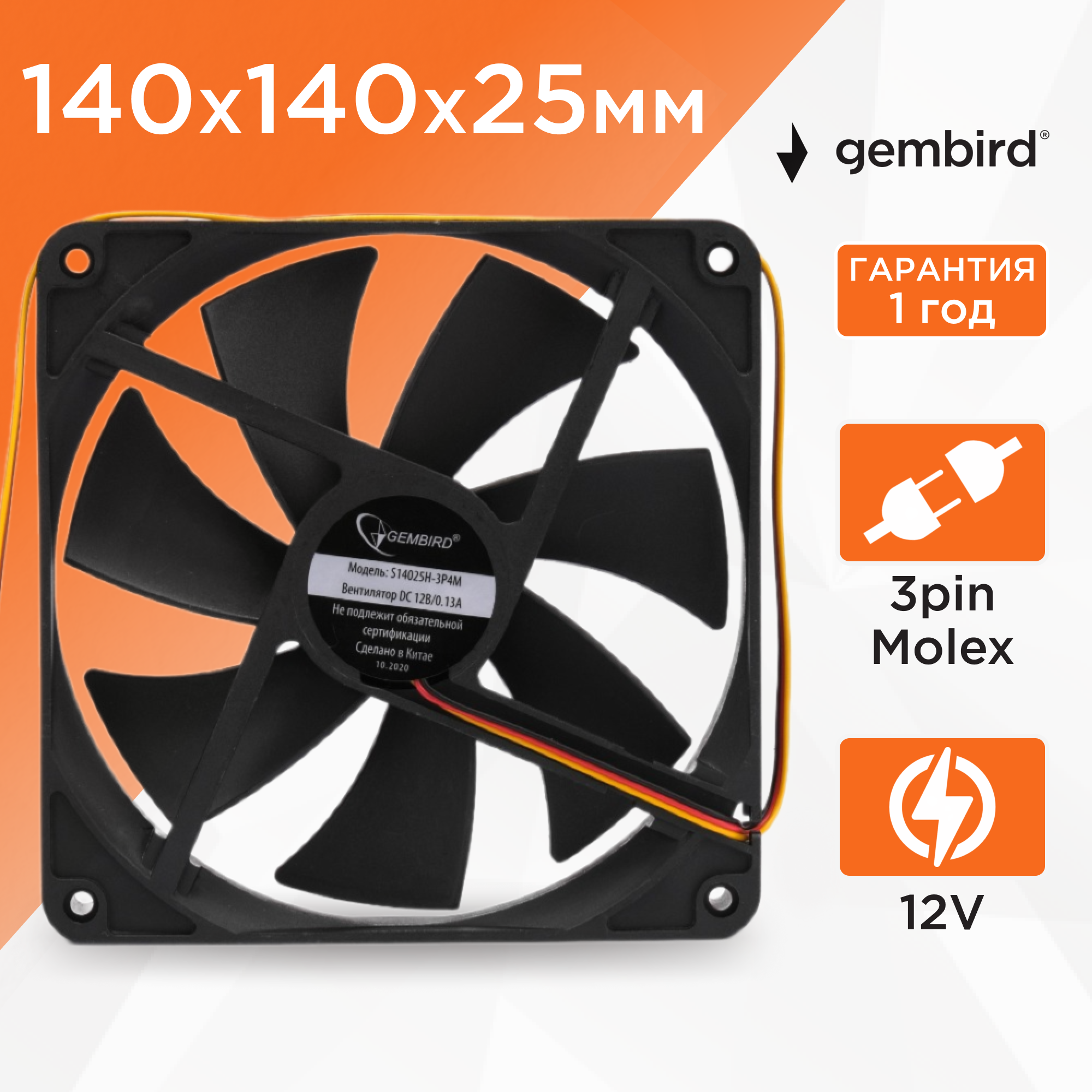 Вентилятор для корпуса Gembird S14025H-3P4M