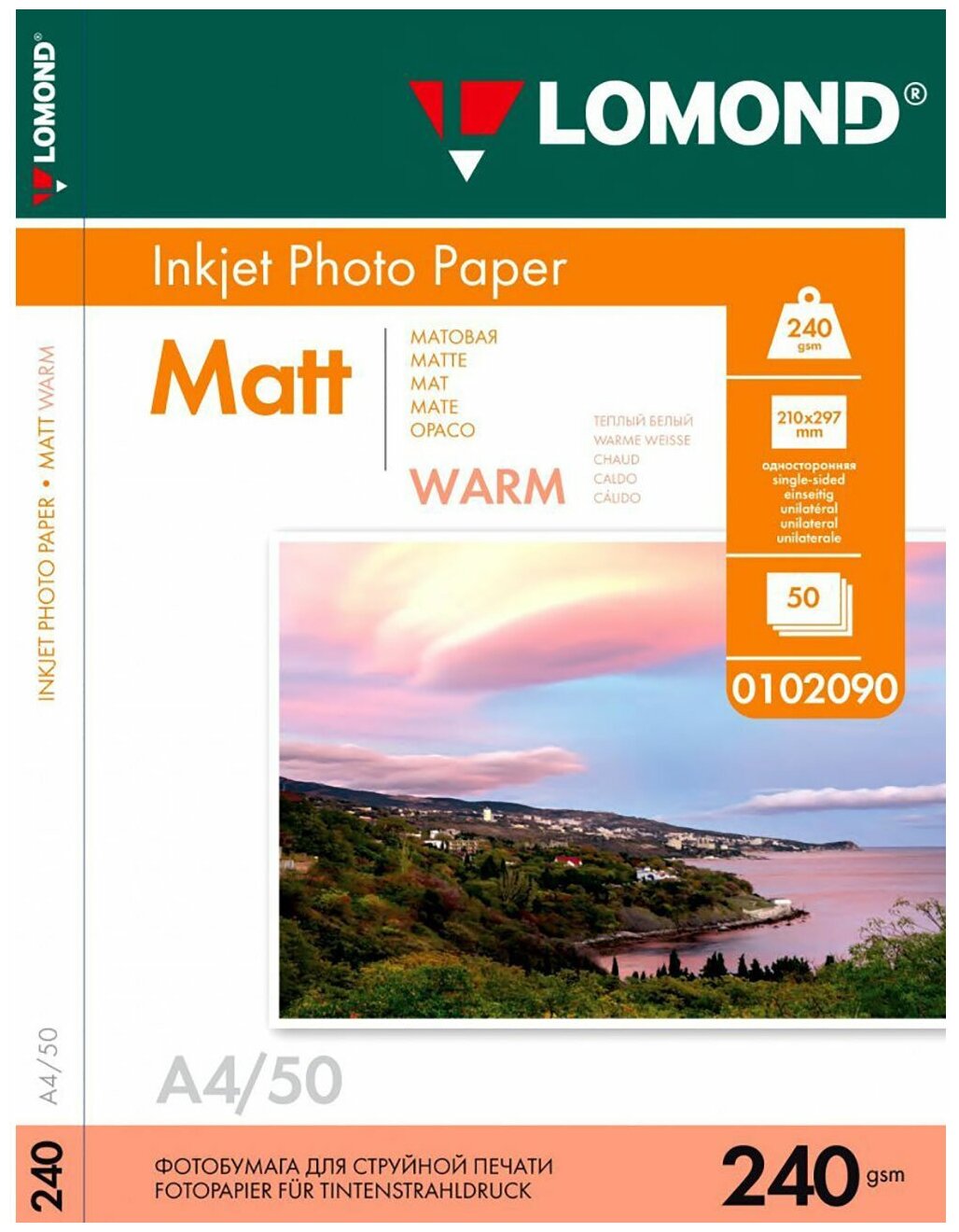 | Название | Односторонняя Матовая (Warm) фотобумага для струйной печати, A4, 240 г/м2, 50 листов. |