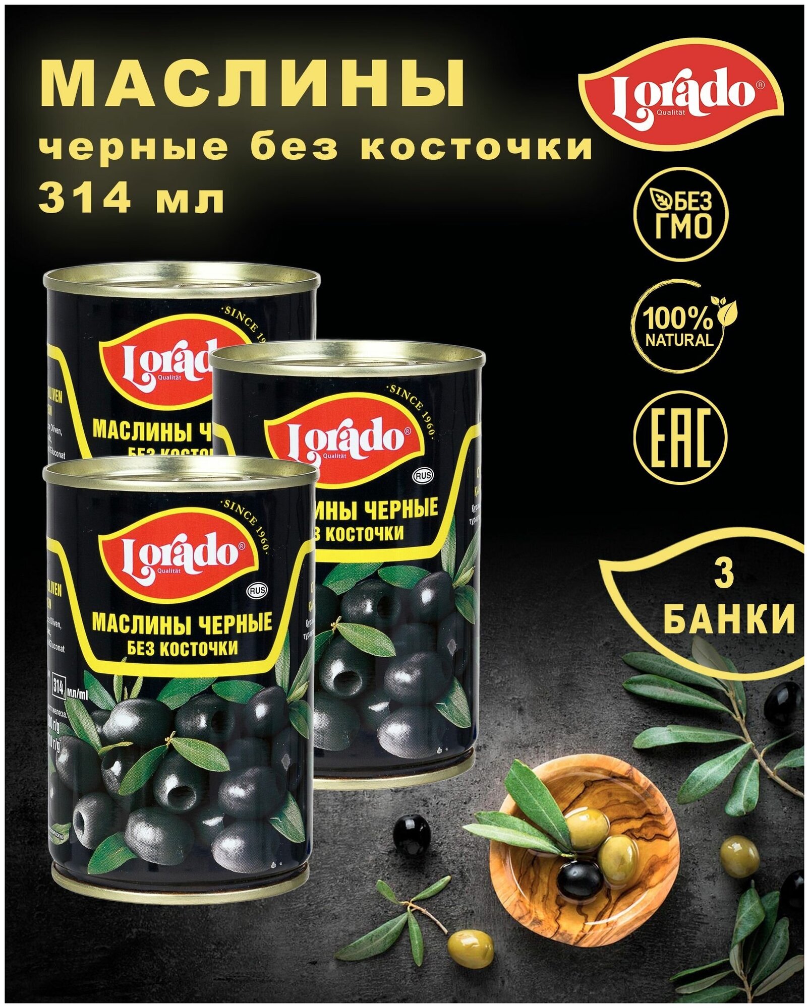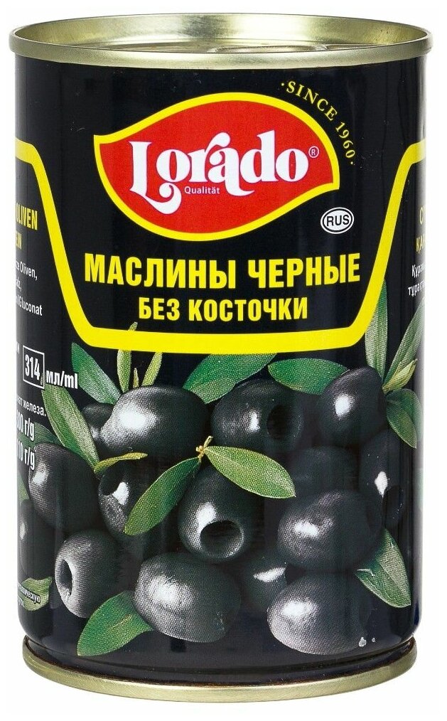 Маслины Lorado черные без косточки 314мл Маслины черные