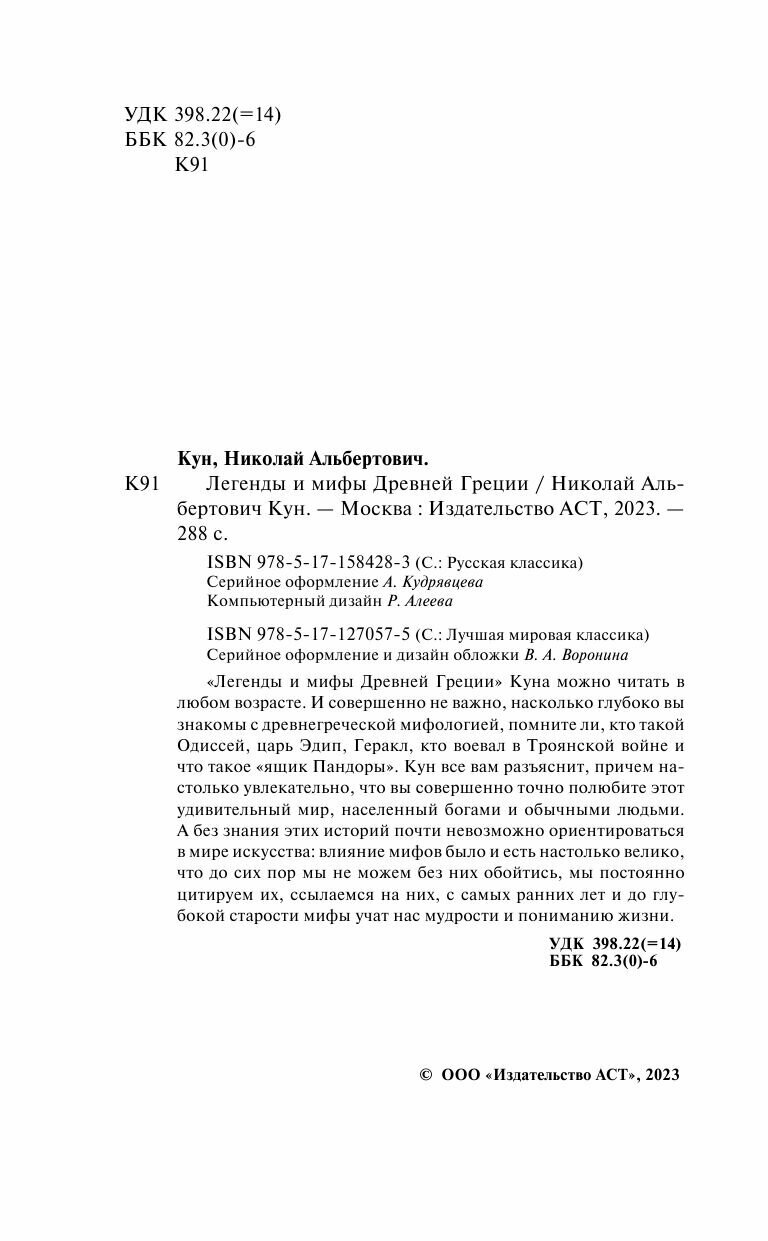 Легенды и мифы Древней Греции (Кун Николай Альбертович); ИЗДАТЕЛЬСТВО "АСТ", 2020